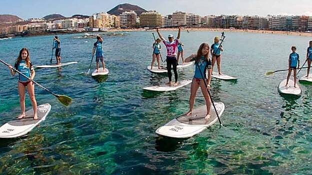Si queremos disfrutar de otra manera la playa más larga de la ciudad, podemos nadar hacia La Barra aprovechando las bajamares, hacer snorkel, alquilar un kayak de mar o una tabla de paddle surf para conocer de manera diferente todo lo que se oculta debajo del mar. Puedes descubrir rutas impresionantes observando los fondos marinos y sus criaturas. En la imagen, actividad ofrecida por Mojo Surf.