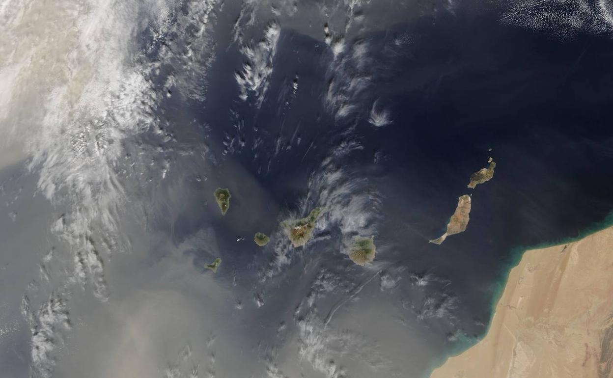La tercera ola de polvo en suspensión, como la definió la Agencia Estatal de Meteorología (Aemet), tuvo su punto máximo en la pasada madrugada y la calima ya ha comenzado su lento repliegue que se alargará hasta este viernes. El grueso de esta última intrusión de calima se aleja de las islas por el sur, como se aprecia en la imagen de satélite de la NASA que acompaña a esta información, tras afectar en las últimas horas a las islas centrales y occidentales. De hecho, a las 18.00 horas de este miércoles no habrá ningún aviso meteorológico en vigor en las islas aunque esto no significa que se de por concluido el episodio de siroco.