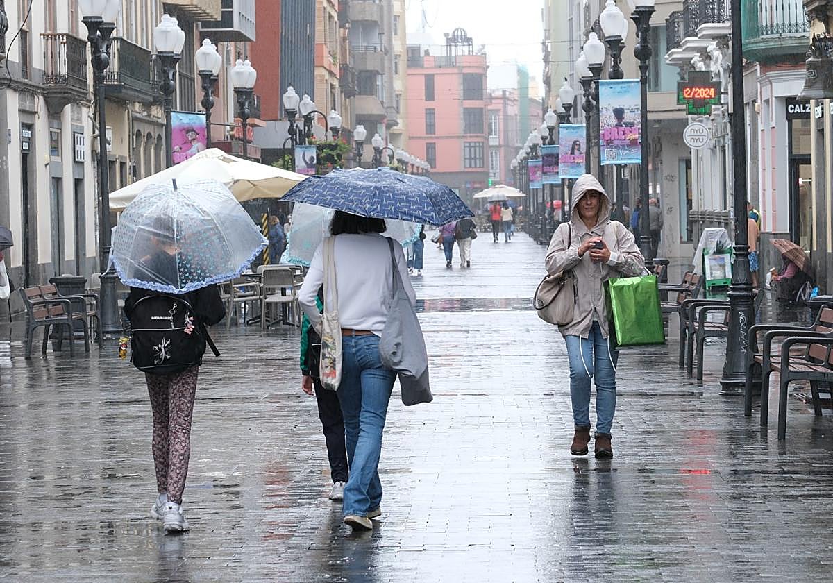 Ya desde el mediodía el agua fue tomando acto de presencia en la capital grancanaria en una jornada encapotada y que incluso se antojaba extrañamente nubosa para lo que se había experimentado en los pasados meses de diciembre y enero.