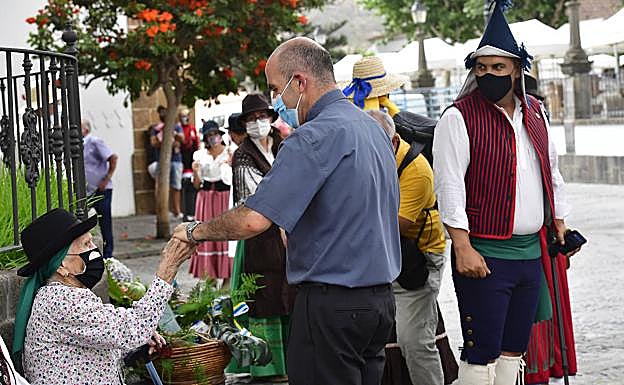 Y esta prematura, pero celebrada por comerciantes y visitantes, bajada de la virgen del Pino al altar desde agosto hace que el ambiente en las inmediaciones de la Plaza de Nuestra Señora del Pino sea animado. Gente como Ricardo y Antonia Arencibia, naturales de Teror pero que residen en la capital de la isla, que aprovechan un hueco libre para disfrutar del encanto de este pueblo. «Que se cancelen los principales eventos es una pena, pero es comprensible teniendo en cuenta todo lo que está pasando. A nosotros solo nos queda poner de nuestra parte guardando la distancia y cumpliendo con todas las normas de seguridad», razona Ricardo. Y aún así, ante la suspensión de estos actos históricos, ambos aseguran que seguirán los eventos a través de la televisión tal y como promueven las autoridades. «Además, mi madre es una persona mayor, tiene 92 años, así que lo veremos con ella», explica este vecino de Teror que cada vez que puede se escapa a su concurrido pueblo.