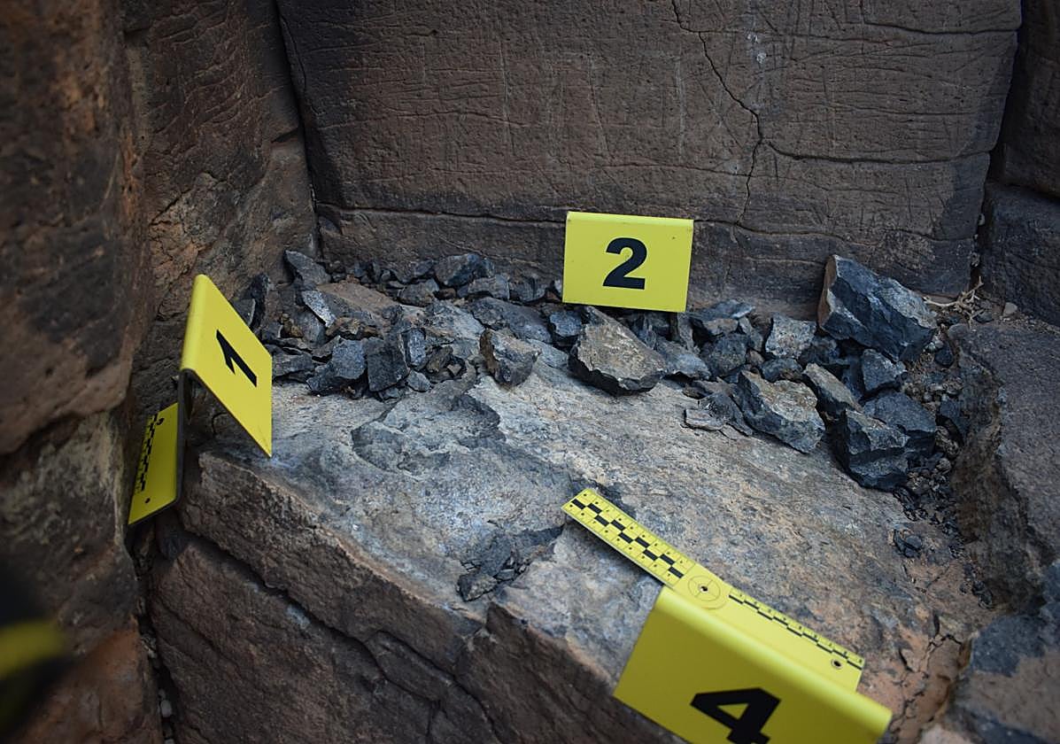 La Inspección del Servicio de Patrimonio Cultural se desplazó al lugar, acompañada por los agentes de Medio Ambiente. Una vez personados, se constató un expolio con sustracción de parte de la roca grabada, que constituye un delito contra el patrimonio histórico y cultural, «al afectar a un bien protegido de gran valor arqueológico».