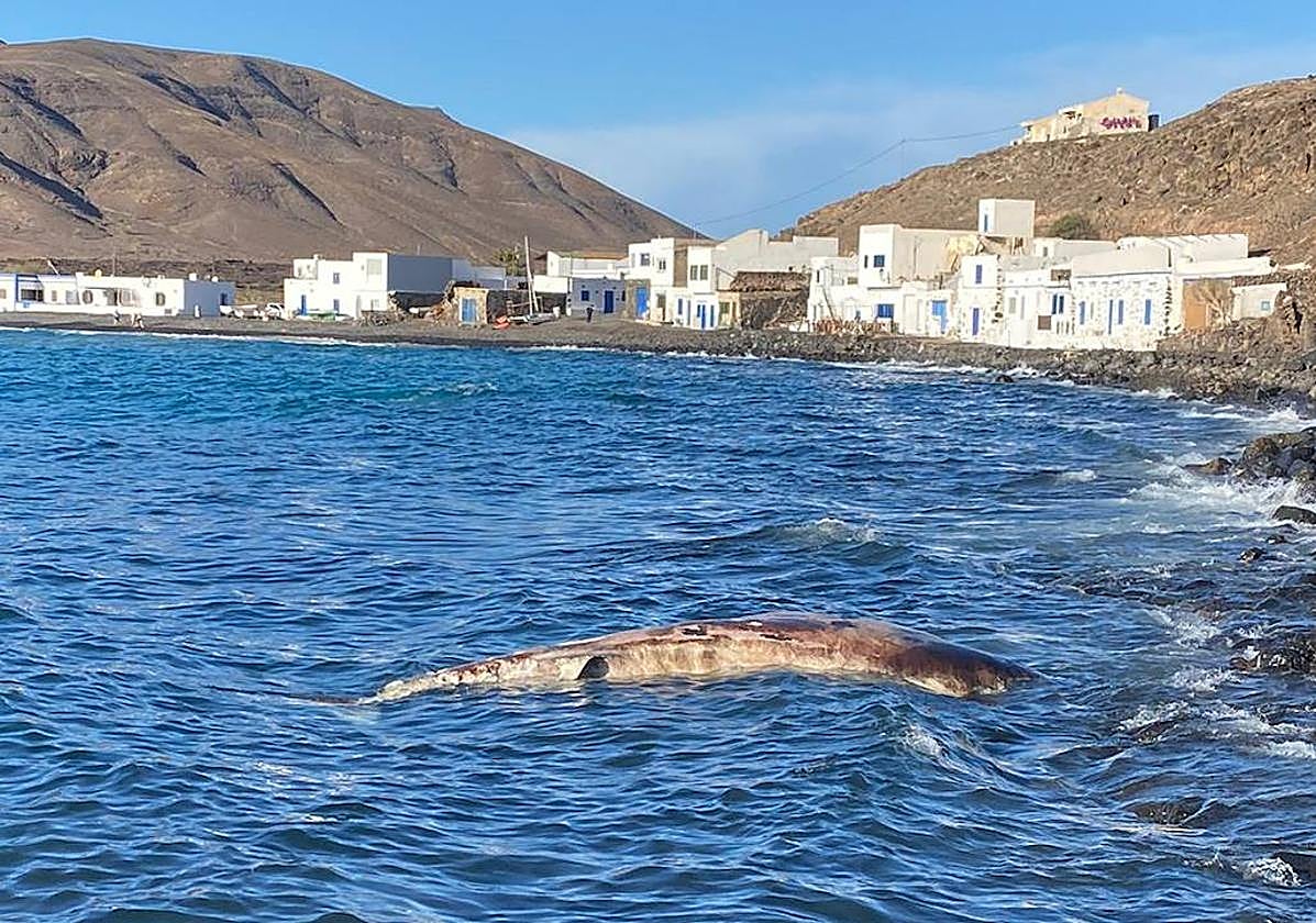 La localidad está esperando a que Medio Ambiente del Cabildo de Fuerteventura lo reflote y traslade al complejo ambiental de Zurita, en el cercano Puerto del Rosario, para practicarle la necropsia.