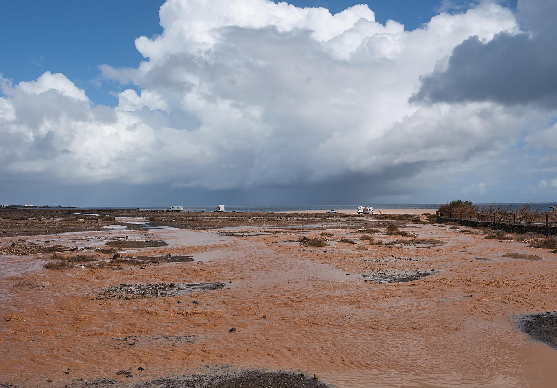 En el centro-este de la isla, la lluvia ha hecho correr el barranco de la granja insular de Pozo Negro, el barranco de La Torre y las cercanías de la localidad turística de El Castillo, todo en el municipio de Antigua.