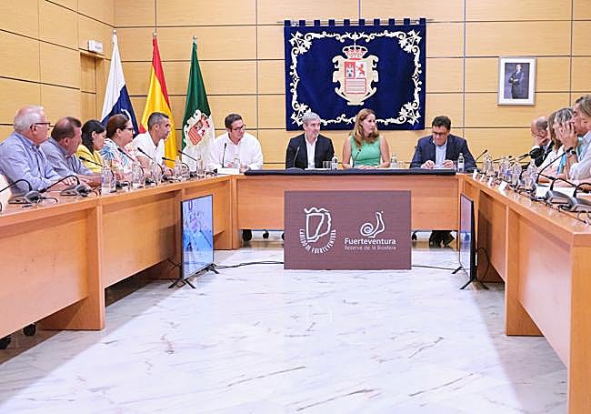 Antes de la reunión con los alcaldes y la presidenta majorera, se sabía que la emergencia hídrica iba a ser la principal necesidad a plantear al nuevo Ejecutivo autónomo, a la vista del desabastecimiento que viven muchos municipios y que el verano aumentará. La presidenta majorera Lola García solicitó la implicación del Gobierno de Canarias en lo tocante a financiación de las infraestructuras hidráulicas y que, ya que se está elaborando el presupuesto para 2024, «se recojan partidas tan necesarias para el CAAF».