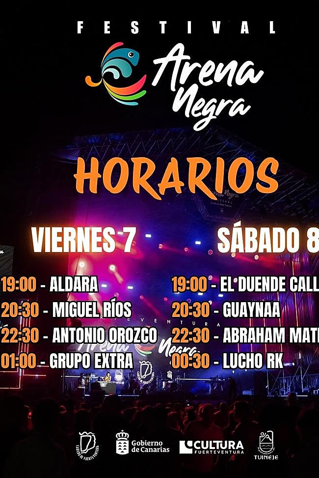 Las personas con movilidad reducida pueden solicitar acceso al parking PMR a través del correo cultura@cabildofuer.esEl festival Arena Negra 2025 ya tiene los horarios de sus conciertos, que contarán con más de una docena de artistas nacionales, internacionales y locales en Gran Tarajal, en el municipio de Tuineje.