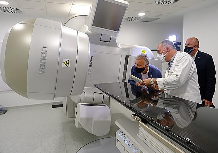 Durante estos meses tras finalizar la instalación del acelerador lineal se han estado desarrollando los trabajos de ajuste y calibración de este equipo de alta tecnología para poder ofrecer los tratamientos de manera segura y eficaz, detalló el consejero regional de Sanidad en el pleno del Parlamento de Canarias.