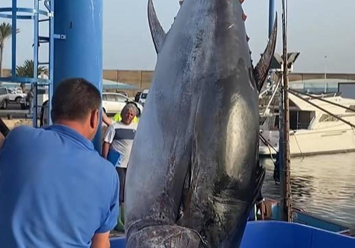 Hasta ahora, el récord del atún rojo estaba en manos del marinero de Gran Tarajal, Tomás García, que pescó uno de 351 kilos hace unas dos semanas.