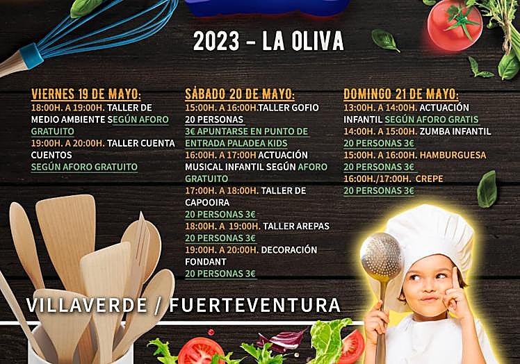 Paladea La Oliva vuelve a concentrar entre el 18 y el 21 de mayo en Villaverde la mayor feria multidisciplinar de Fuerteventura donde la gastronomía, la música y el deporte tendrán un destacado papel en un programa repleto de un sinfín de actividades.