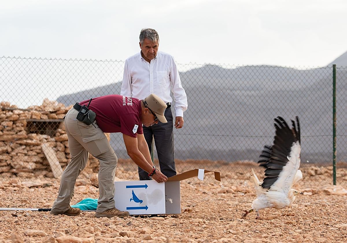La Consejería de Medio Ambiente del Cabildo de Fuerteventura liberó un ejemplar de guirre tras su recuperación. El ejemplar de la subespecie endémica de Fuerteventura apareció en mayo herido en la rotonda de TesjuateEl Cabildo de Fuerteventura, a través de la Consejería de Medio Ambiente, puso en libertad esta semana un guirre (Neophron percnopterus). El ejemplar de esta subespecie majorera fue hallado el pasado 10 de mayo en una rotonda de la localidad de Tesjuate, en el municipio de Puerto del Rosario, gracias a diversos avisos de la ciudadanía. El guirre presentaba daños graves como fractura del hueso húmero izquierdo por causa desconocida.