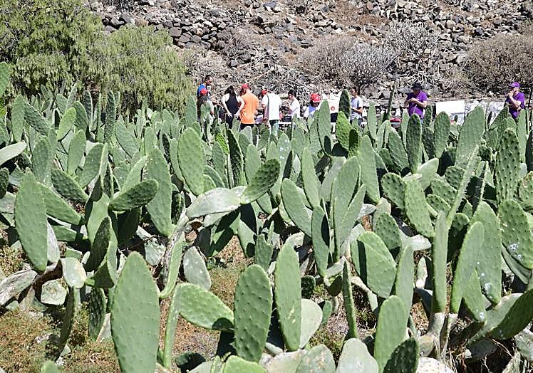 Hacía calor y el paisaje que rodea la plantación de tuneras es árido, pero a estos 10 expedicionarios tan especiales llegados de la capital, acompañados de sus monitores, les picó rápido la curiosidad. Lorenzo, que gestiona la empresa Canaturex, agarró la cuchara, raspó la penca de una tunera y recolectó unos bichos negros, aplastó uno contra la palma de su mano y brotó un rojo intenso. «¡Sangre!», exclamó otra vez Pablo. «No», le aclaró Lorenzo, «es carmín».