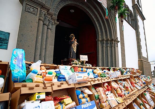 Es así como en todos los centros escolares del municipio se ha realizado una recogida de alimentos de primera necesidad que serán destinados a los más necesitados. Unos productos que los alumnos y alumnas llevaron hasta el pórtico de la Iglesia de Nuestra Señora de Candelaria, lugar en el que depositaron la ofrenda, realizando una pequeña actuación. Acompañando a los centros escolares estuvieron presentes la Agrupación Folclórica Guadalupe y la Asociación Dragos y Laurel.