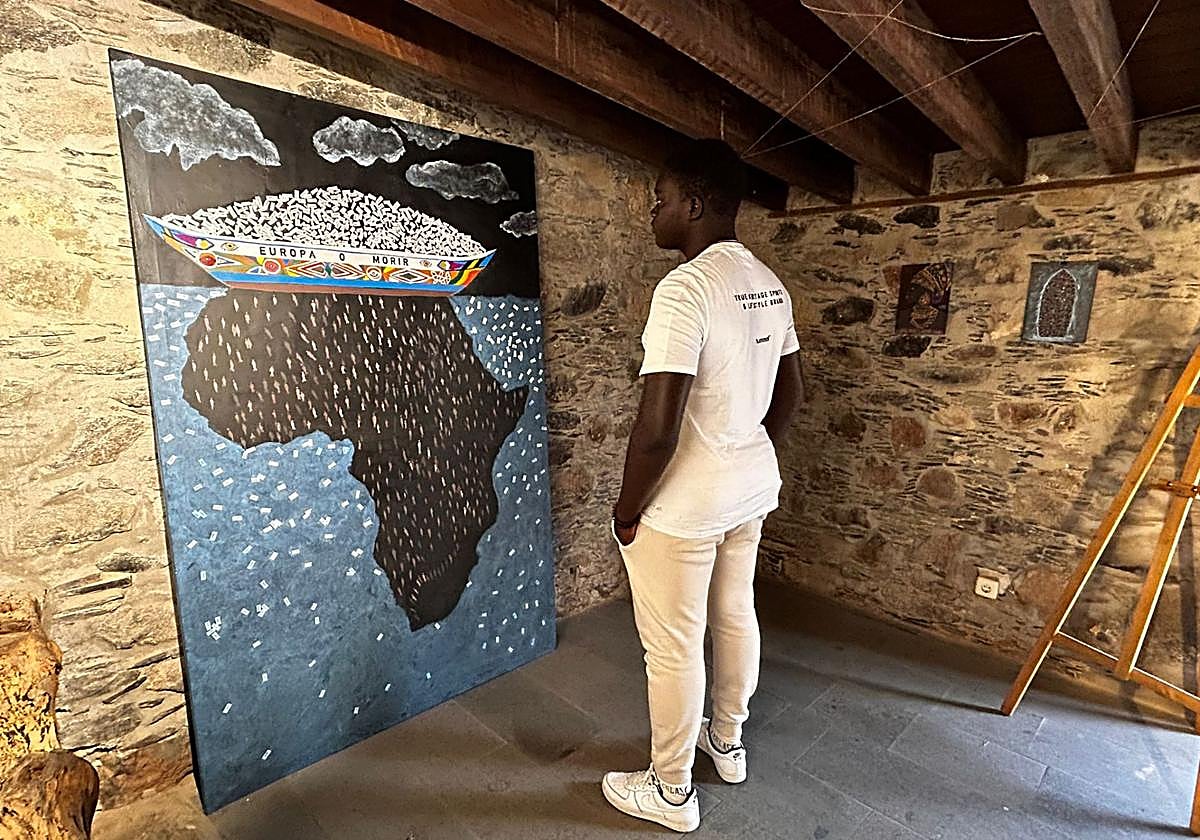 Esta obra ha servido de cartel para la exposición 'Europa o morir', que este jueves se inauguró en la Casa Saturninita, en San Fernando (San Bartolomé de Tirajana) y que acoge una decena de cuadros hechos por alumnos de 4º de la ESO que cursan Expresión Artística en el IES Faro de Maspalomas, entre ellos, el propio Mbaye, para concienciar sobre el drama de la inmigración, tan presente en Canarias al ser punto de destino de miles de personas.