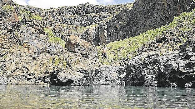 Solo tiene un inconveniente. Hay que esperar a que llueva un par de días seguidos. Es entonces cuando el barranco de Berriel, a dos pasos del turismo de masas de Bahía Feliz, ofrece baños de relax en piscinas de agua y piedra.