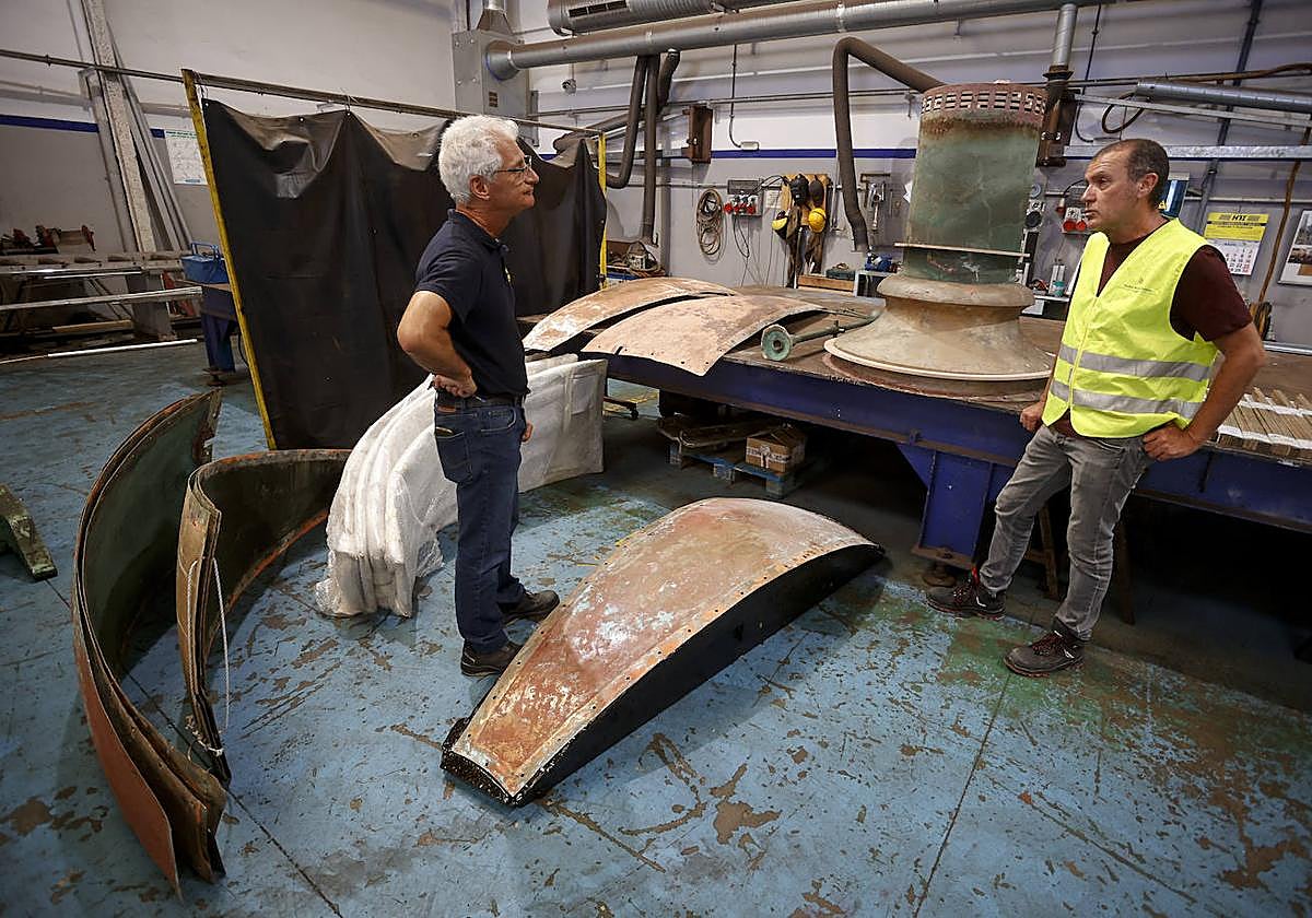 Estas tareas de reparación son, al fin y al cabo, parte del día a día de Feroher. Lo que les ha costado más es reproducir el diseño de las planchas para hacerlas nuevas. No fue sencillo, porque, como aclara García, uno de los técnicos que se ha enfrascado en este reto, «las técnicas han cambiado». Tras practicar diversas pruebas con varias matrices, lo han conseguido. «Es que la pieza tiene dos curvas y lo difícil ha sido combinarlas deformando el material de forma controlada y acorde a las necesidades». Fue una prueba más para esta empresa, pero, como otras tantas desde su fundación, allá por 1946, la ha vuelto a superar.