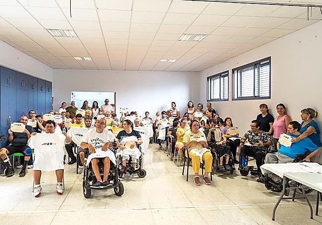 El acto de entrega de un diploma y una camiseta tuvo lugar en el Centro Ocupacional de los Llanos, con la asistencia del consejero de Deportes del Cabildo, Aridany Romero, el concejal de Actividad Física y Deportes, Julio Ojeda, y la edil de Promoción de Autonomía Personal, Minerva Pérez.