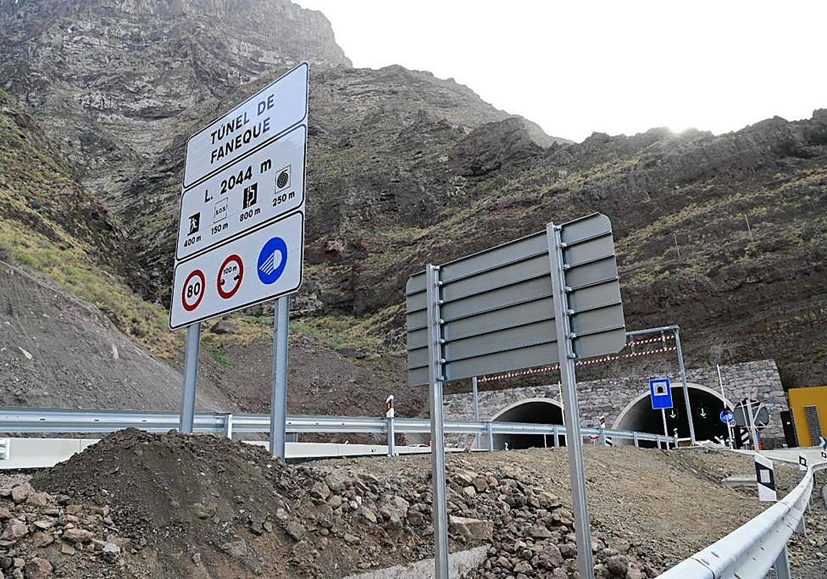 Con más de dos años de retraso en relación a la fecha prevista cuando se inició la construcción de la segunda fase de la nueva carretera a La Aldea, este próximo viernes entrarán en servicio los túneles de Faneque, el tramo de la obra El Risco-Agaete que evitará el paso por la zona más peligrosa de la carretera actual debido a los desprendimientos