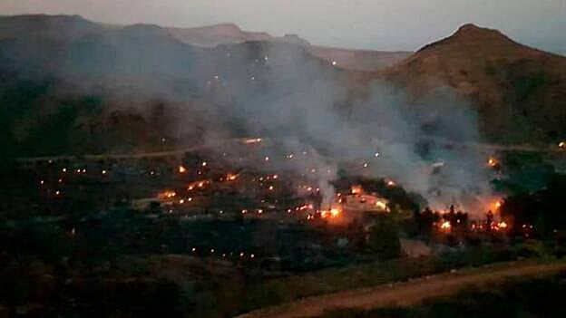 El fuego aún mantiene pequeños rescoldos en la zona afectada, unas 35 hectáreas alrededor del hotel rural Molino de Agua, situado en el interior del palmeral de Fataga. El Cabildo grancanario cuenta con un equipo de unos 15 agentes desplegado sobre el terreno, que durante todo el domingo se encargará de liquidar las brasas que aún humean por el barranco.