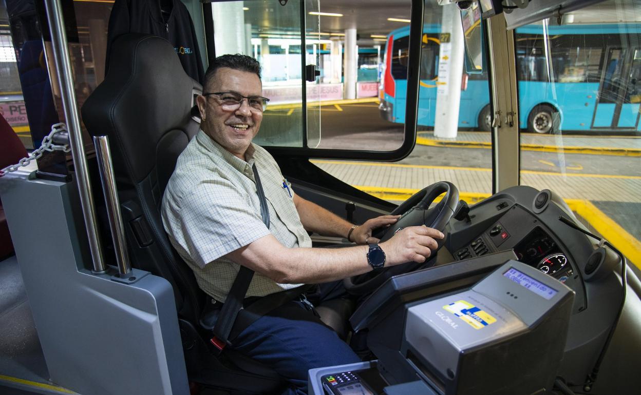 Eloy pasó del chat del wasap al Facebook en verano de 2018. Cubría, como ahora, la línea 01, la que une Mogán con la capital. «Llegaba por las mañanas a Mogán y cuando se bajaba la gente, subía la música y grababa un audio: ¡Aquí desde Puerto de Mogán, hace un día de puta madre!». El nombre del chat, 'Nuestros valores'. Pero un día, uno de los que hacen la 91, que es la directa, observó cómo Eloy abrió las puertas y puso la música. Fue Esteban Benítez. «Tiene una voz de locutor de radio». Se le acercó e hizo como si radiara las gracias de Eloy. «Cuando yo escuché aquello, le dije que subiera, cerré la puerta y le di el móvil, 'tú locuta, graba y yo monto lo mío', le dije». Y así nació este showman guagüero. De hecho, fueron ellos, sus compañeros de Global, los que le bautizaron como Radiogato.