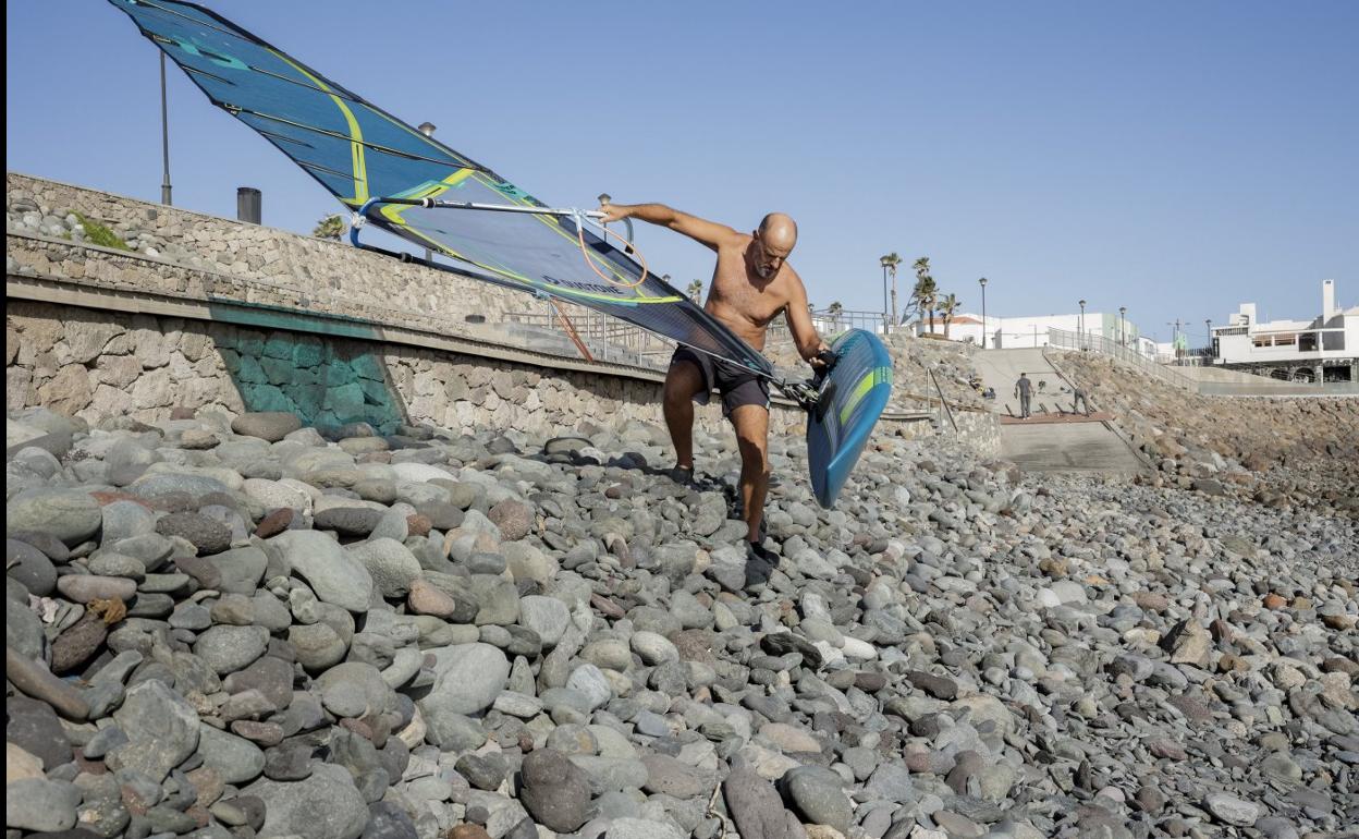Deportistas y usuarios del campo de regatas de Santa Lucía advierten de que la rampa no está a cota cero y que se generan escalones peligrososA los windsurfistas les toca, y les gusta, jugar con el viento y con las olas, pero en tierra se vuelven más vulnerables y sus movimientos son menos ágiles. El aparataje de la vela les dificulta el paso, por eso cualquier mínimo obstáculo se les hace más cuesta arriba que al resto.