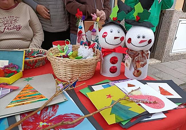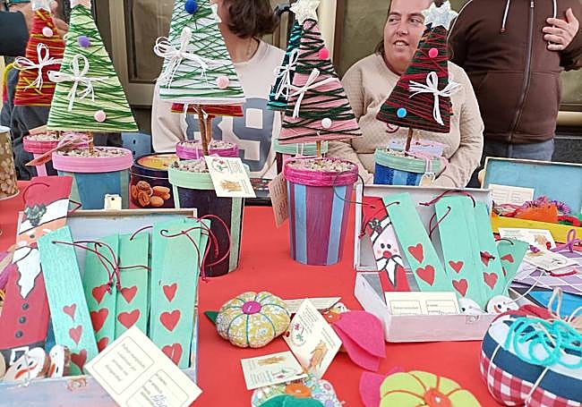Marcadores de libros, postales, adornos para colgar en el árbol o centros de mesa de Navidad, atrapasueños o bufandas son algunos de los productos que han confeccionado para vender al público. Los once usuarios del centro han trabajado «durante los últimos seis meses para tener finalizado todo para este día», señala la trabajadora social del Centro Ocupacional, Yasmina Pérez.