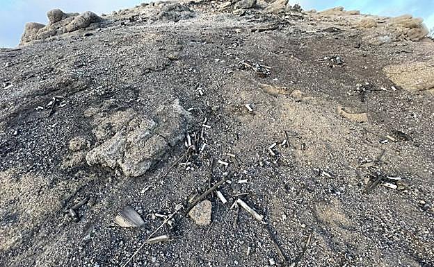 Más de un mes después de la celebración de los fuegos de las Fiestas de Santiago, la ladera de este emblemático está llena de restos de voladores, plantas quemadas y la basura que dejó la pirotecnia