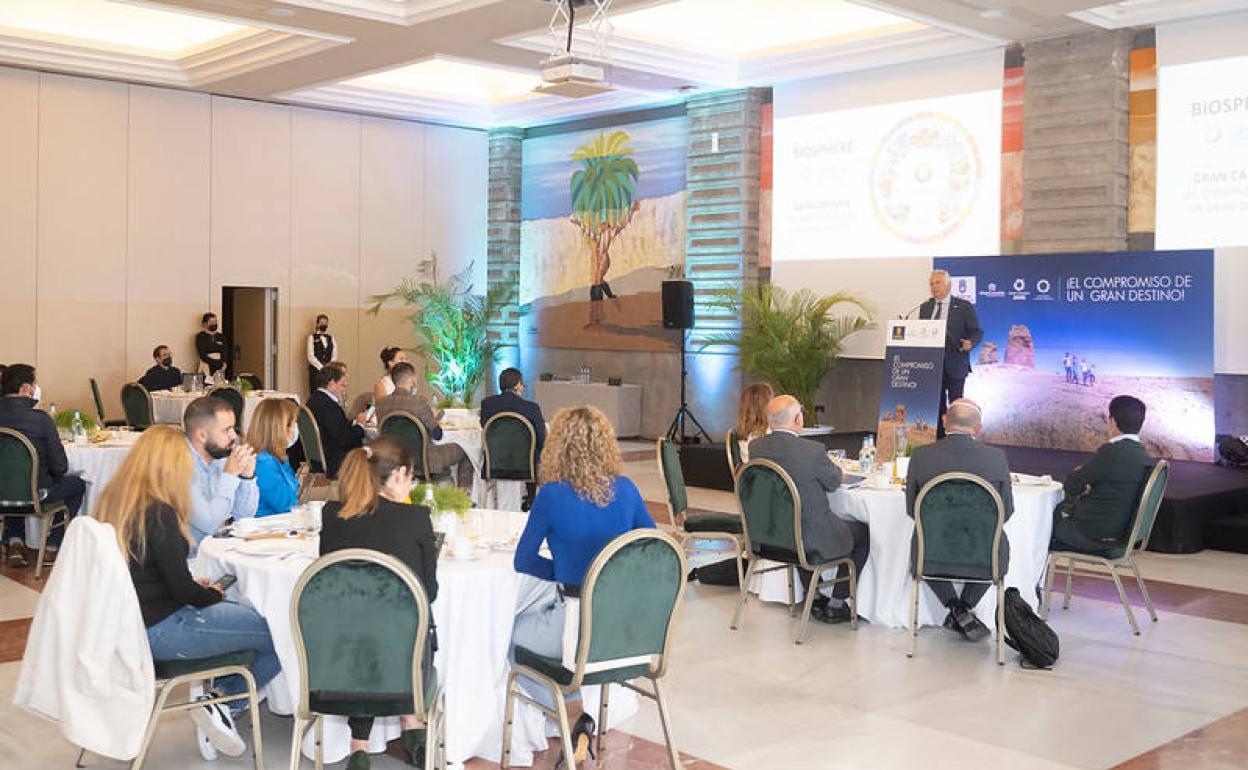 «Queremos hacer partícipes de esta apuesta por la sostenibilidad a toda la sociedad grancanaria y, más concretamente a las empresas turísticas de la Isla, porque es a través de la cooperación y el trabajo conjunto como se alcanzan las grandes metas. Por ello proponemos al sector empresarial de la industria turística de Gran Canaria iniciar el camino hacia la certificación que concede el sello Biosphere, a través de una metodología integral de sostenibilidad, competitividad, calidad y diferenciación. Este certificado reconoce el esfuerzo y el compromiso de los destinos y sus empresas y servicios en materia de sostenibilidad, pasando a formar parte de la comunidad global Biosphere Destination Community», terminó el consejero.