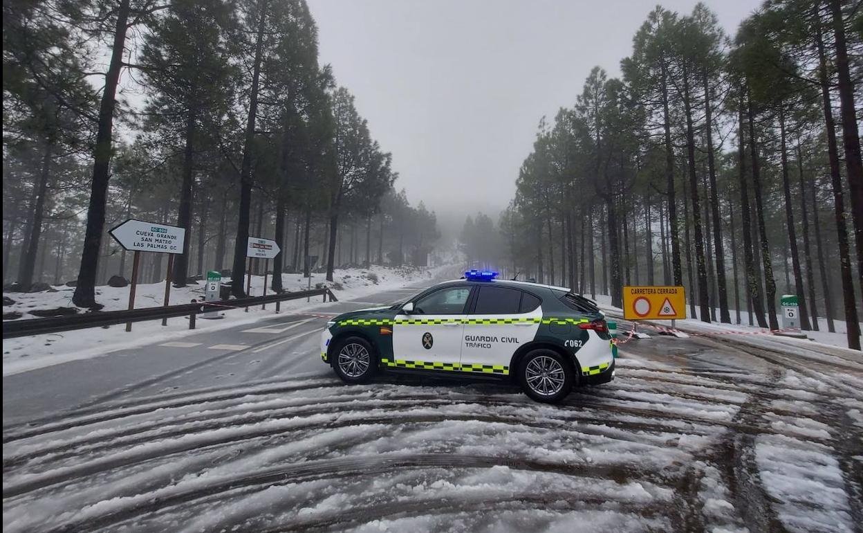 La Guardia Civil cierra el acceso a la cumbre de Gran Canaria por la helada