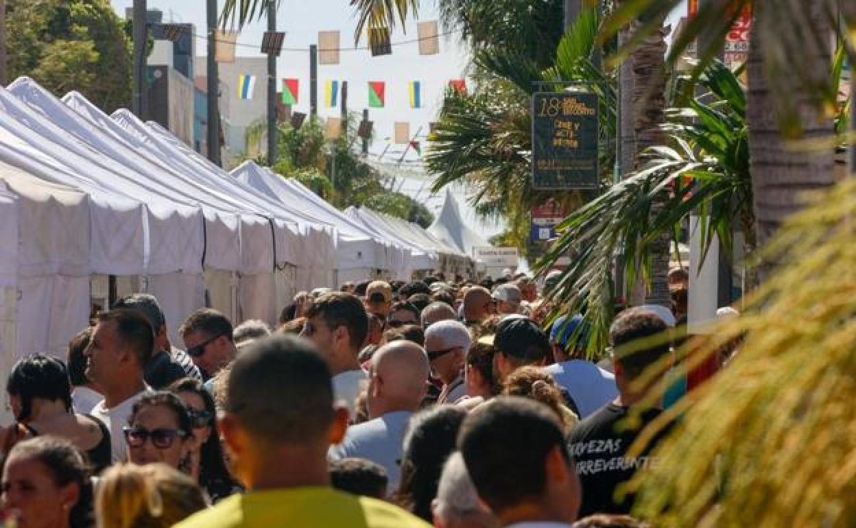 Ofrecen hasta 8 tipos, cuatro en grifo y cuatro en lata. Las tienen tostadas, negras, rubias, más intensas, con más o menos alcohol, o sin gluten. Cumplen cinco años. Están de aniversario, como la feria, que ya tiene mayoría de edad y que este domingo pondrá el broche a esta edición con Los Gofiones, a las 12.00, y Yeray Rodríguez, a las 14.00.