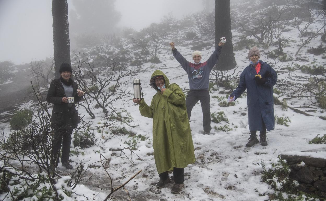 La noche más fría. La nieve, que no visitaba la isla desde febrero de 2018, hace ya tres años, volvió a extenderse durante una noche que en Canarias fue la más gélida, lluviosa y ventosa de España.
