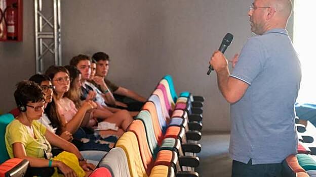 El coordinador de CEAR Canarias, Juan Carlos Lorenzo, muestra a los jóvenes del VI CAMP Internacional Rotary Maspalomas la realidad de los miles de personas que salen de su país por empobrecimiento o persecución.