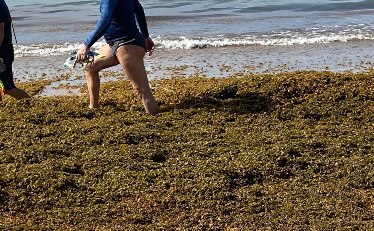 El temporal de mar deposita toneladas de estas plantas marinas, en especial en la zona de la playa grande