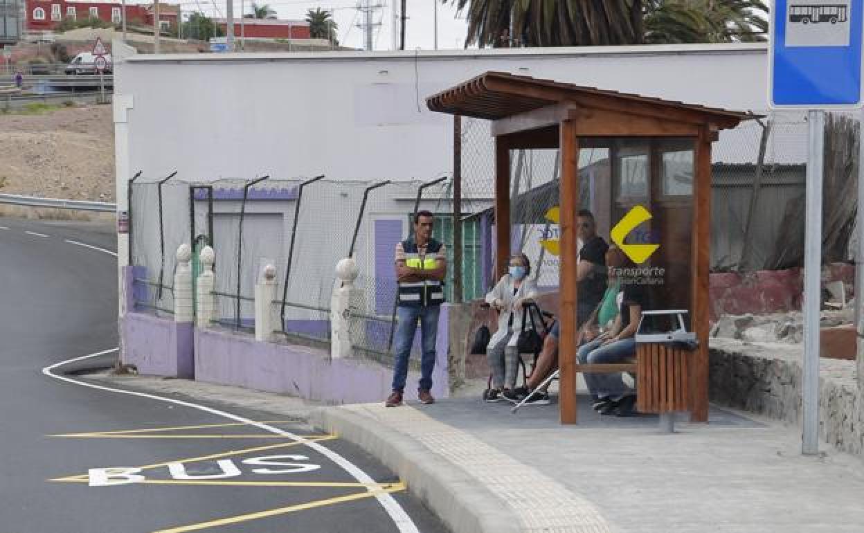 «Esperábamos a la intemperie y esto era un barrizal. No teníamos donde guarecernos», añade al cobijo de una de las dos marquesinas que ha instalado el Cabildo en una actuación que ha ido acompañada de otras mejoras.