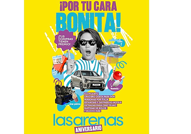 Bajo el lema «¡Por tu cara bonita!», el Centro Comercial Las Arenas celebra su 32º aniversario con su ya tradicional tómbola de aniversario, una cita muy esperada por los clientes y visitantes del centro, que cada año reparte miles de premios y regalos.