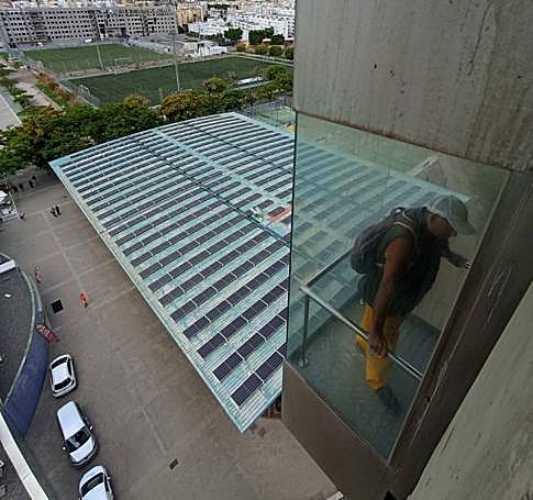 El ascensor, que salva una altura superior a los 30 metros conecta los barrios de Las Rehoyas y Schamann