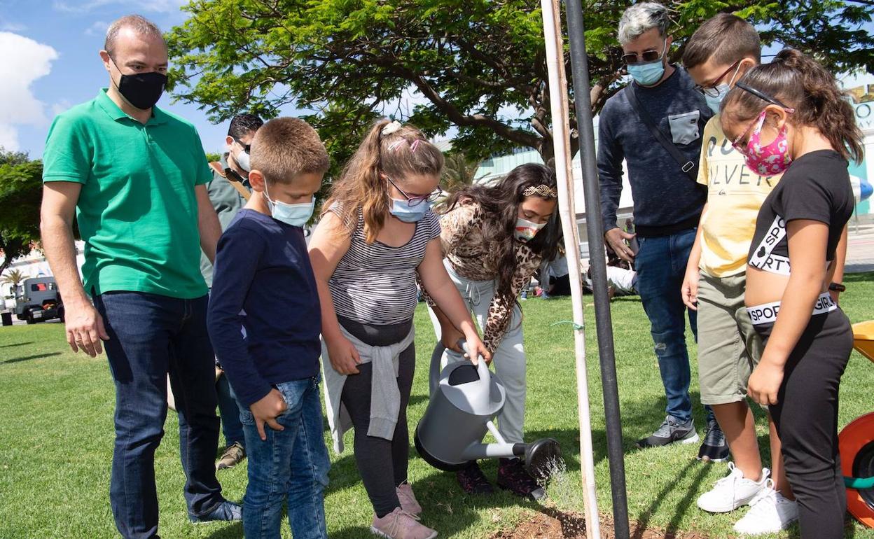De esta manera, una treintena de niños y jóvenes de distintos centros educativos han participado en la plantación de una decena de callistemun en los alrededores del Parque Santa Catalina, con el objetivo de conocer la importancia y el cuidado de las zonas verdes y poner en valor los beneficios que supone la reforestación para la ciudad.