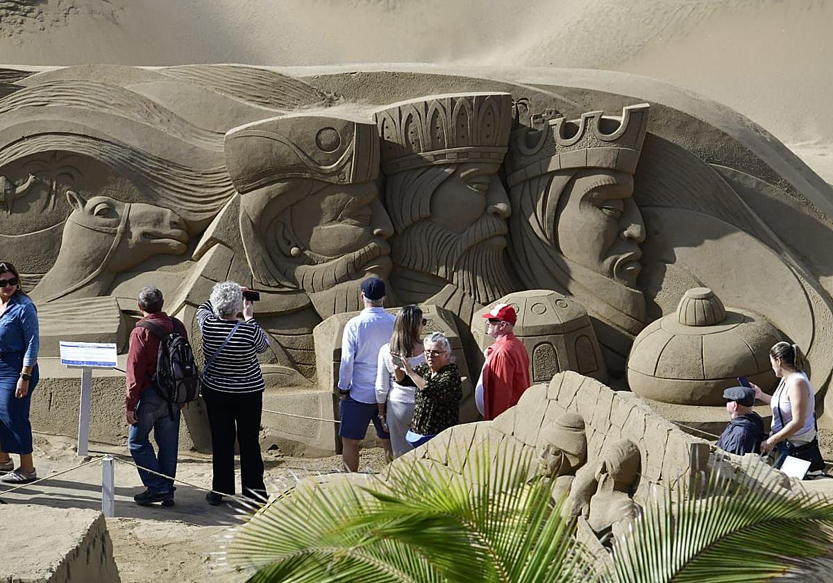 Esculpido por artistas de renombre, el belén de arena no solo recrea escenas tradicionales navideñas, sino que también rinde homenaje al entorno natural de la isla. Los canarios y turistas disfrutan paseando por la avenida mientras se empapan del espíritu navideño en un escenario único donde el calor y el buen tiempo son los protagonistas.