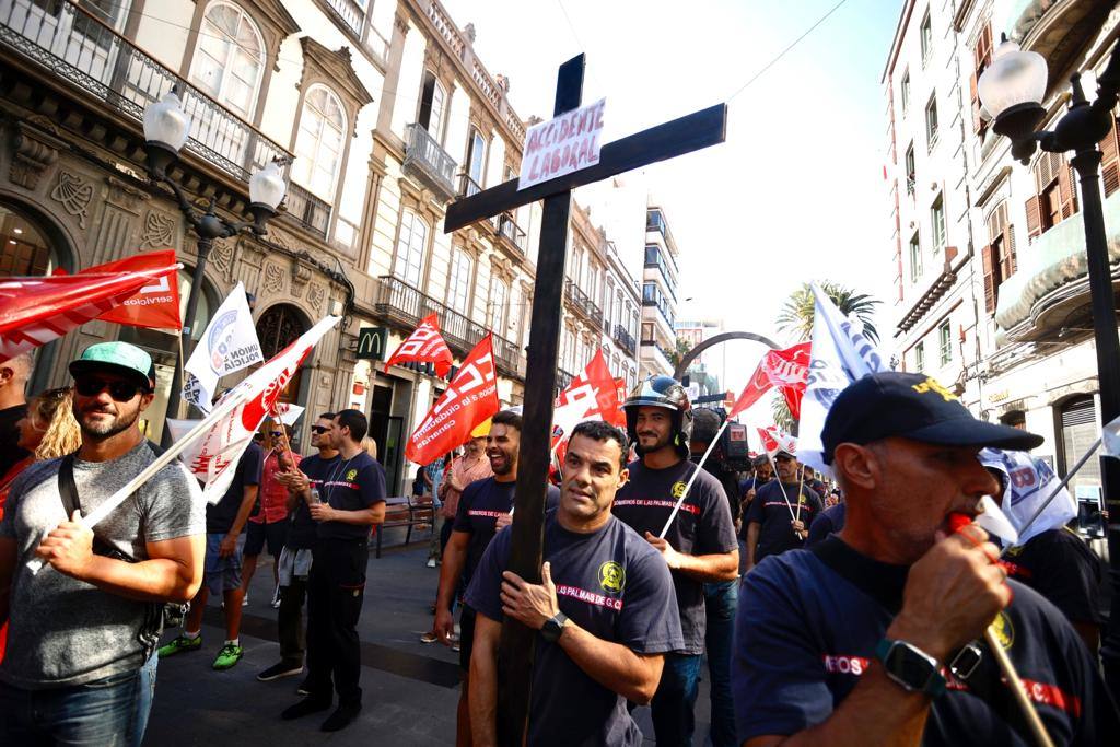 El cuerpo de bomberos del Servicio de Extinción de Incendios y Salvamento (SEIS) han tomado este viernes, de nuevo, las calles de la capital grancanaria, desde el parque de San Telmo hasta el entorno de teatro Pérez Galdós y de vuelta por Triana hasta el punto de origen, para reclamar la mejora de sus condiciones laborales, en concreto, las dotaciones de material y personal, así como la introducción de cambios en la organización del cuerpo.