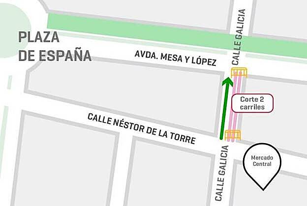 La calle Galicia cerrará al tráfico este martes 26 de febrero dos de los tres carriles del tramo que conecta Néstor de La Torre con la Avenida Mesa y López. Los taxis y las guaguas podrán circular por el carril que permanece abierto en dirección Puerto.
