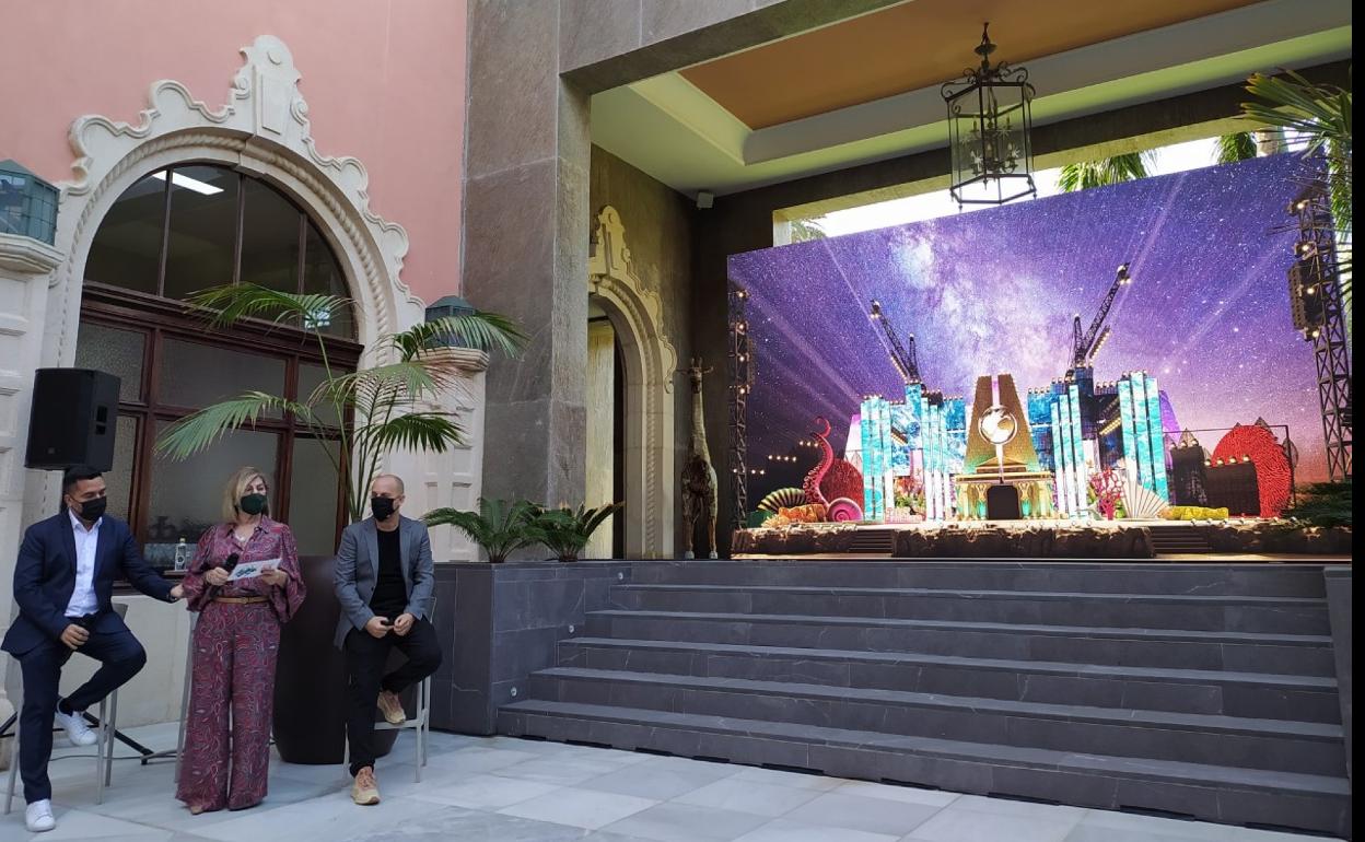 Sergio Macías dio a conocer en la mañana de este viernes su propuesta de escenario para el carnaval de 'La Tierra', que se va a desarrollar del 11 de febrero al 6 de marzo de 2022, en un acto celebrado en el Hotel Santa Catalina en el que estuvo acompañado por la concejala del área, Inmaculada Medina, y el director artístico de la fiesta, Israel Reyes.