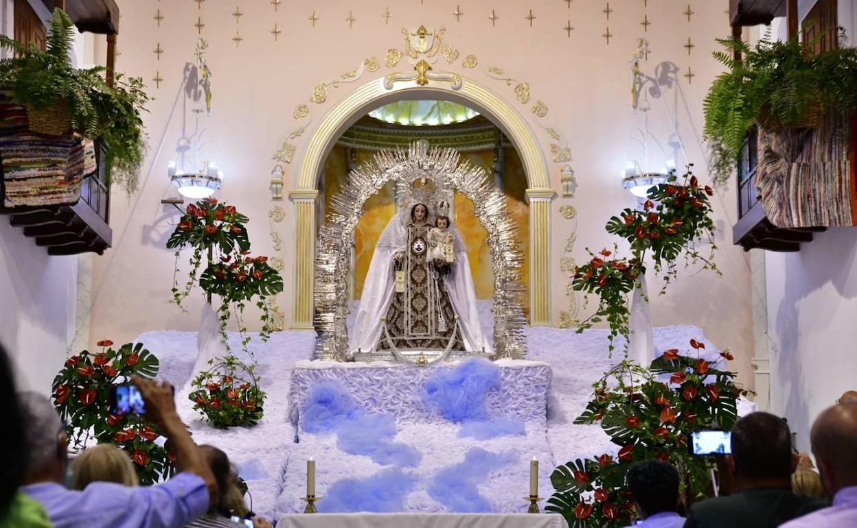 Además, a las 19.00 horas, se procedió a la bajada de la imagen de la patrona de los marineros del camarín en su templo de la calle Benartemi a la que siguió una misa con el coro de la parroquia, 'Amigos del Carmen'.