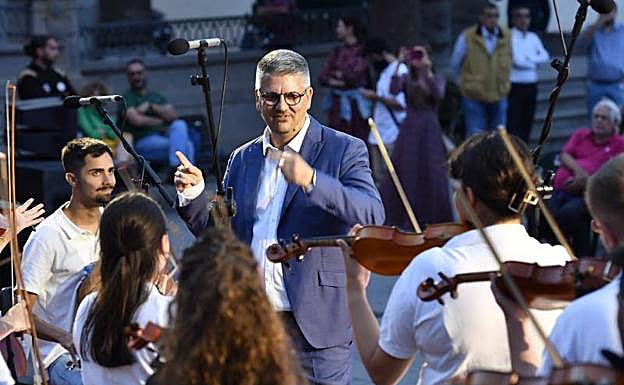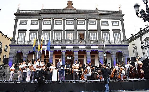 El director de Barrios Orquestados abrió este viernes en la plaza de Santa Ana el programa de actos que conmemoran los 544 años de la capital grancanaria