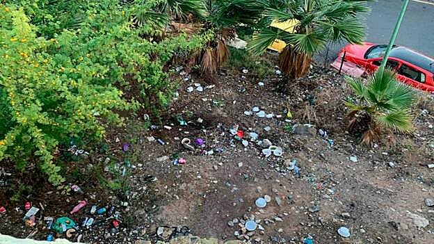 Y es que en muchas de las calles interiores del barrio, lejos de la sexta planta de las Oficinas Municipales, se percibe a simple vista el abandono de sus infraestructuras. Las raíces de los árboles ya han reventado prácticamente todas las aceras y los parques. Los muros de contención están completamente destrozados y los jardines son vertederos improvisados en los que se acumula mucha basura.