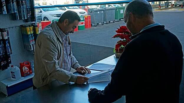 En las imágenes, distintos momentos del reparto que ha realizado la Cooperativa de Taxis Las Palmas entre sus asociados.