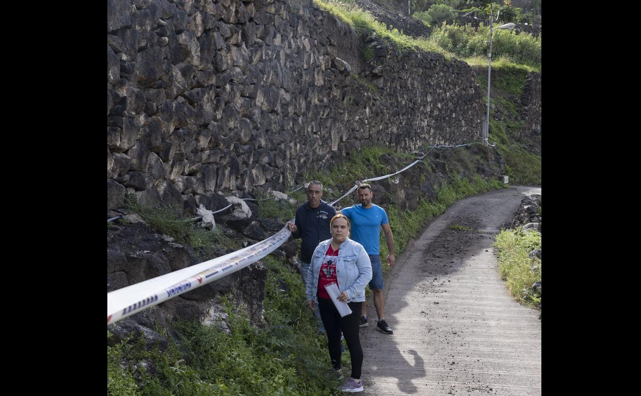 Asimismo, reclaman una solución al estado en el que se encuentra el tramo de calle en el que se ubican las cuatro viviendas afectadas por la situación que denuncian. Esto es, los números 18, 18-B, 16 y 17 de Almatriche de Tenoya. Dicen que, como consecuencia de la rotura de una tubería de Emalsa, «que se instaló en nuestra propiedad sin permiso», se venció el muro. «No lo han arreglado y eso lleva años», señala Javier.