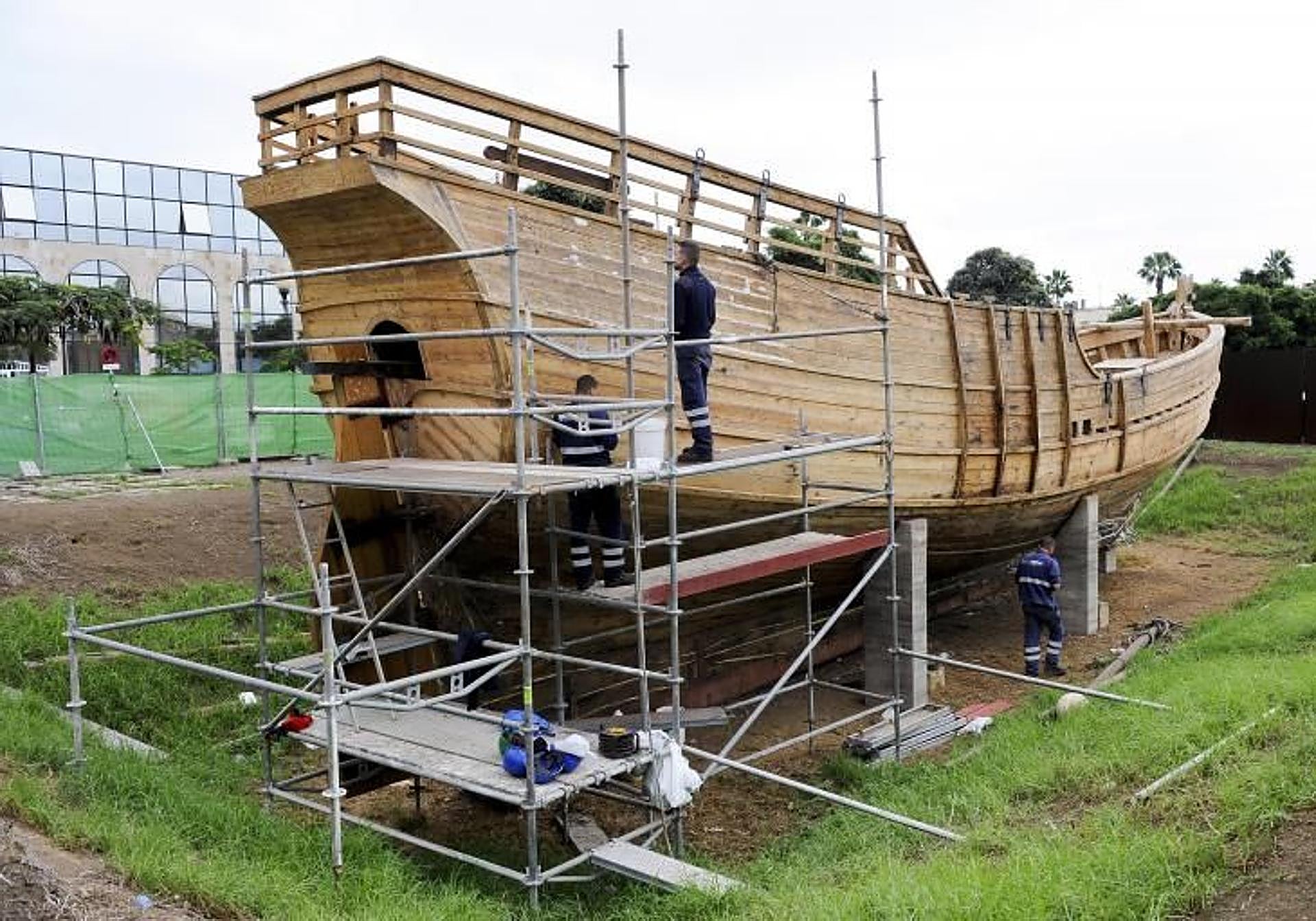 Tras pasar cuatro años en el Puerto, la carabela fue trasladada al parque del castillo. Juan Carlos Alonso