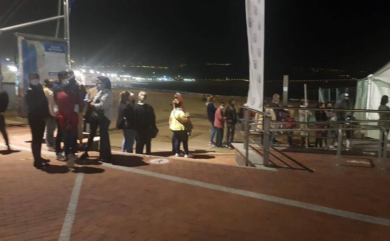 No quedó otra que tirar de paciencia ante la multitud congregada en este enclave, con mascarilla y tratando de guardar la distancia de seguridad, para disfrutar en directo de la belleza artística de esta superficie y que este año tiene un homenaje incluido a la isla de La Palma.