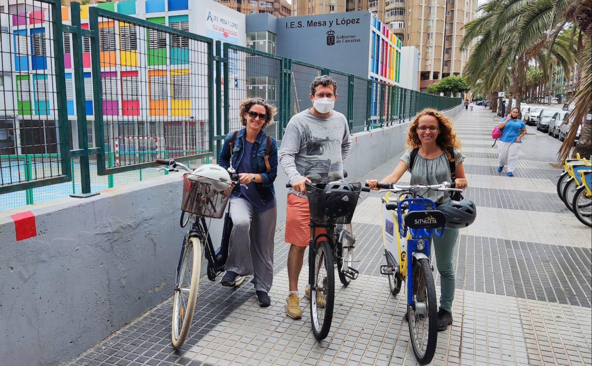 Su convicción tiene que luchar, en ocasiones con el miedo. Porque aunque su determinación por desplazarse en bicicleta y apostar por una ciudad de Las Palmas de Gran Canaria más amable es firme, hay veces que se enfrentan a un muro de incomprensión por parte de los conductores motorizados con los que tienen que compartir el uso de la calzada. Son tres profesores del Instituto de Mesa y López los que reclaman del Ayuntamiento una campaña de concienciación y la mejora de la señalización para que todos tengamos más claro cómo deben convivir la bicicleta y el coche.