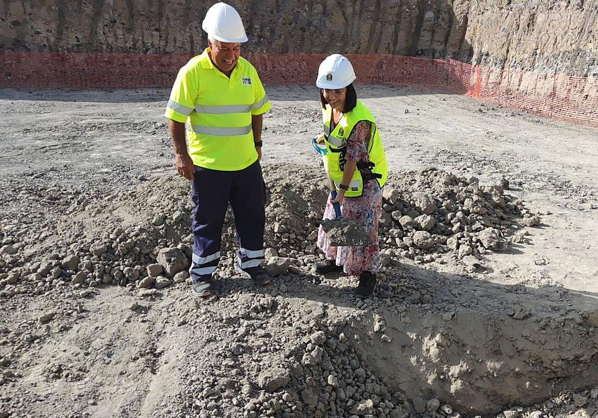 La alcaldesa Carolina Darias y la subdelegada del Gobierno, Teresa Mayans, colocan la primera piedra del bloque en Tamaraceite Sur