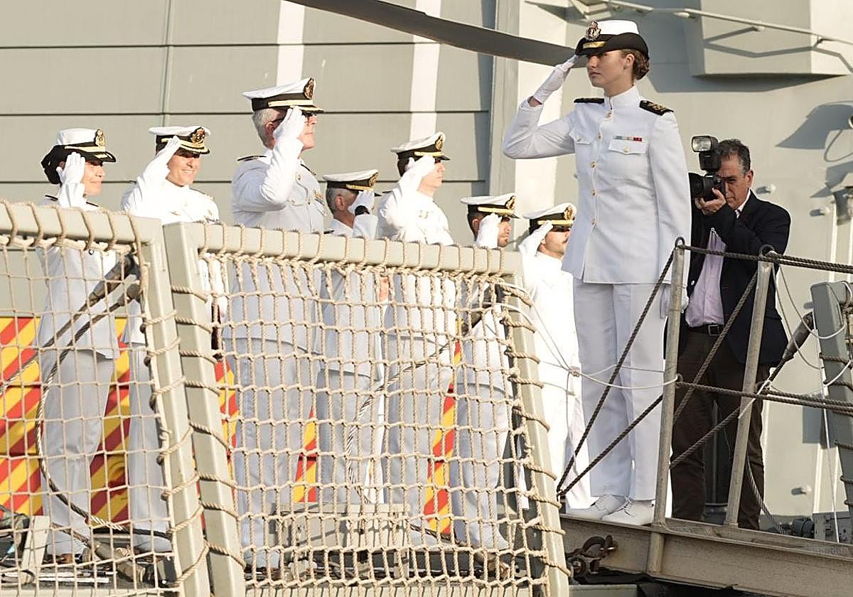 La princesa Leonor ha embarcado este sábado en Las Palmas de Gran Canaria en la fragata Blas de Lezo para ampliar su formación militar en los ejercicios de la Armada Española con munición real más complejos de los últimos tres años, que tendrán lugar a 550 kilómetros de Canarias.
