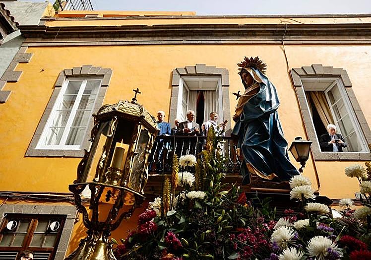 La procesión de Las Mantillas inunda Vegueta de blanco